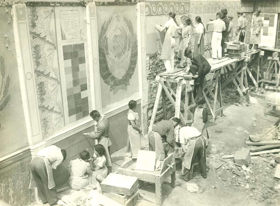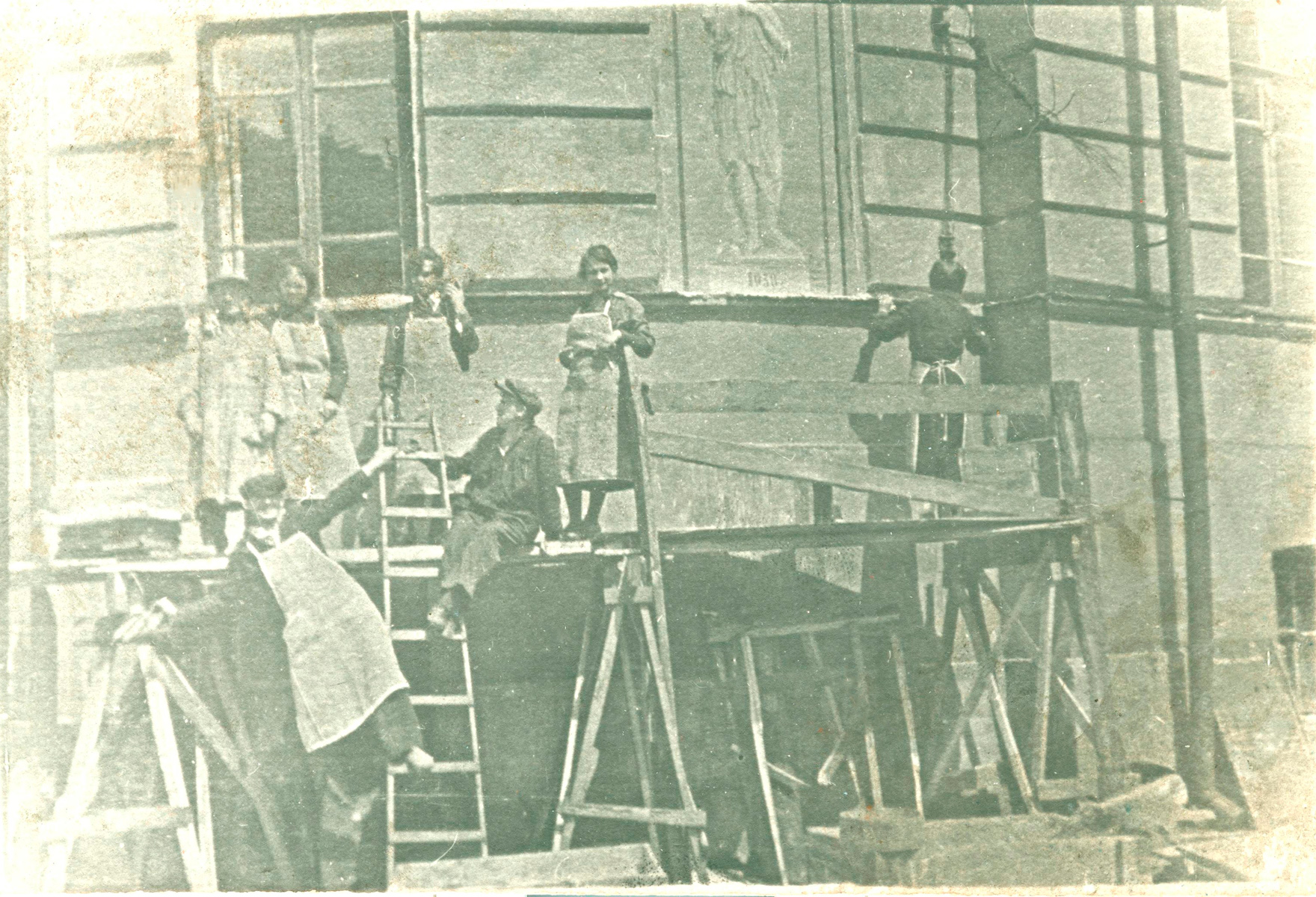 Б.П. Чернышёв с женой и сыном на фоне ГМИИ на Волхонке. 1935.МАРХИ. Летняя практика студентов. Руководитель Б.П. Чернышёв, сидит на лесах в центре. 1937-41.МАРХИ. Летняя практика студентов. Руководитель Б.П. Чернышёв, стоит на подмостках, справа 4й. 1938.Чернышёв Борис Петрович. Фото на проездном билете. 1936.