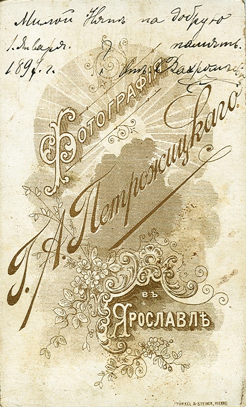 Милой няне на добрую память от В. Вахромеева. 1 января 1897 г.