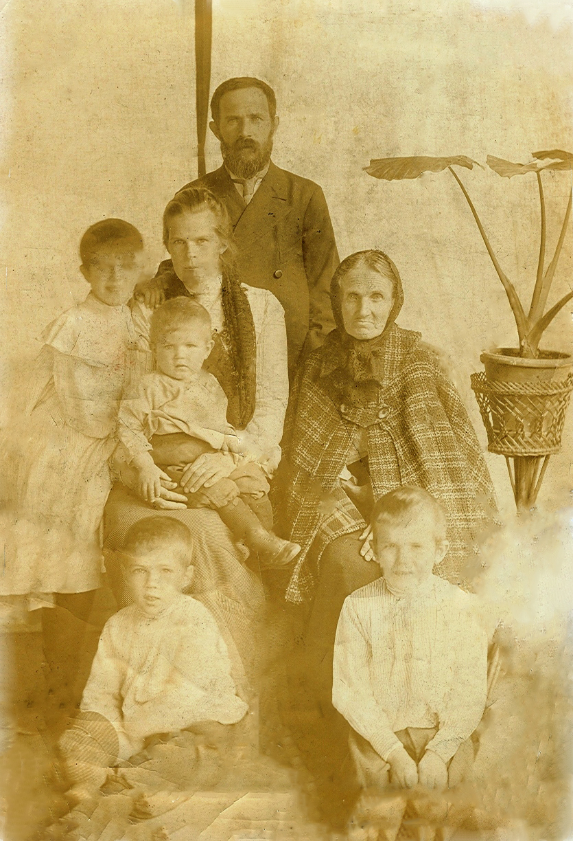 Семья П.П. Чернышёва: П.П., Александра, Е.П. и Владимир (1902), Олимпиада Степановна, Сергей и Николай. 1903 г. Фото в Глинках.