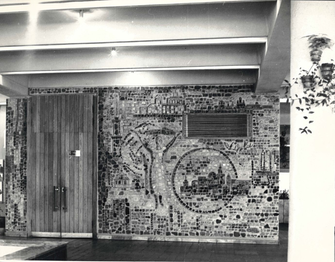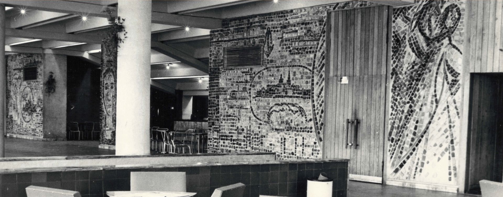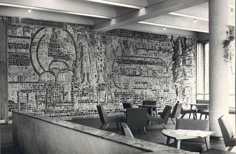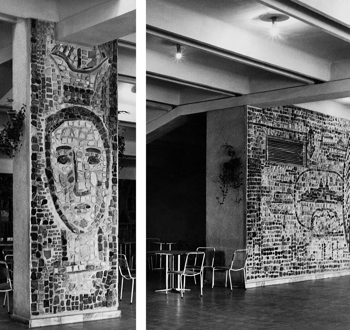 Работа по оформлению фойе кинотеатра велась в соавторстве с художниками Александрой Лукашевкер и Тамарой Шиловской. Чернышевым были выполнены грандиозные панно на трех расположенных на расстоянии стенах, которые он сумел объединить ритмом и общей, несмотря на монументальность, живописностью. Эта живописность создается свободным чередованием разного размера камней, тщательно подобранных мастером.